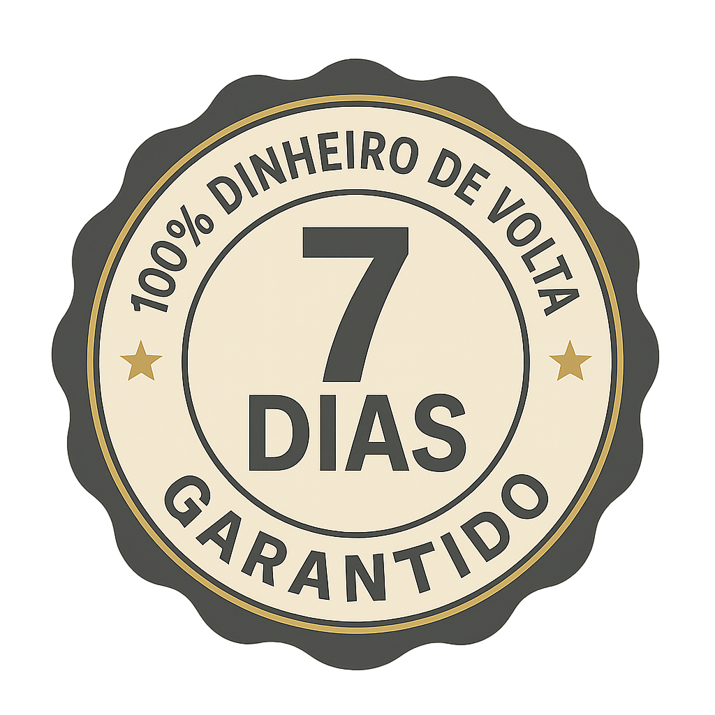 Você tem 7 dias para testar. Se achar que não é pra você, é só pedir o reembolso direto pela Hotmart. É garantia 100% sem burocracia.